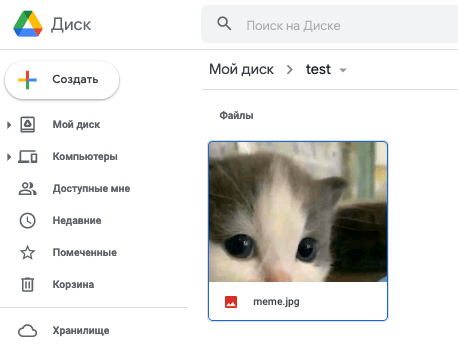 Now, let’s upload a file meme.jpg to the folder_id: